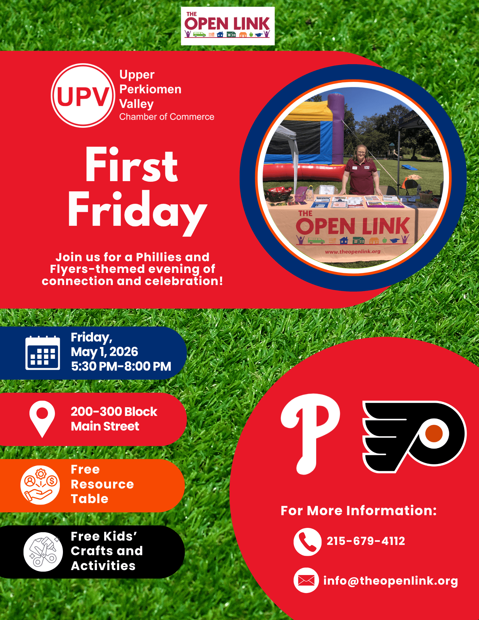 From 5:30 PM-8:00 PM, we'll be at the 200-300 Block of Main Street in East Greenville. Learn more about our organization, programs, services, and opportunities to get involved! We'll have a fun craft for kids, too.